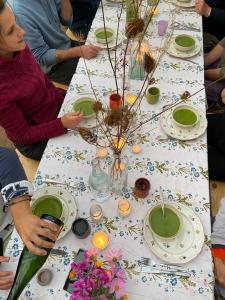 Le vendredi soir vous serez accueilli par un bon repas mitonné avec amour par Muriel, en collaboration avec toutes les ressources du jardin (légumes, fruits, herbes aromatiques et fleurs) et samedi soir elle orchestrera votre créativité pour un repas collaboratif et très festif aux bougies !